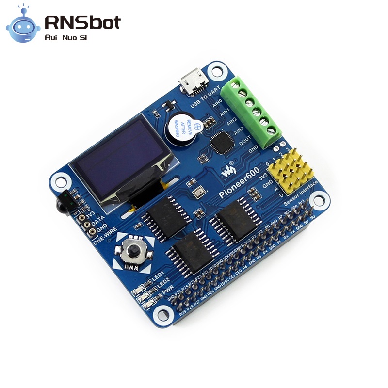 Pioneer600 Raspberry Pi Expansion Board includes miscellaneous components, all on a single piece of hardware. It supports Raspberry Pi A+, Raspberry Pi B+, Raspberry Pi 2 Model B, and Raspberry Pi 3 Model B. Pioneer600 offers a standard I/O interface over various components and offers more GPIO possibility with the PCF8591.